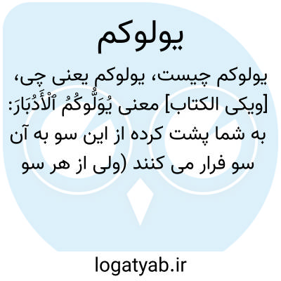 [ویکی الکتاب] معنی یُوَلُّوکُمُ ﭐلْأَدُبَارَ: به شما پشت کرده از این سو به آن سو فرار می کنند (ولی از هر سو می روند برگردانده می شوند. جزمش به دلیل جواب واقع شدن برای قبل از خود می باشد)
