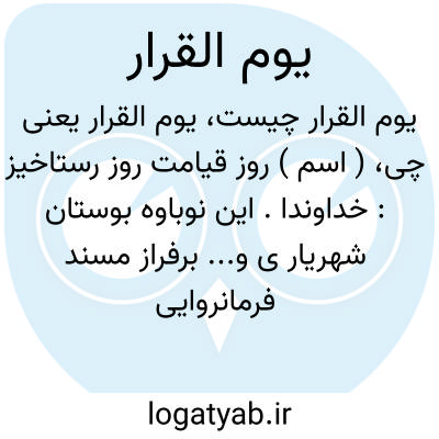 ( اسم ) روز قیامت روز رستاخیز: خداوندا. این نوباوه بوستان شهریار ی و... برفراز مسند فرمانروایی سالهای بسیار الی یوم القرار پاینده و مستدام داشته عالمیان را در ضلل ظلیل مرحمت و عاطفتش آسوده دار.