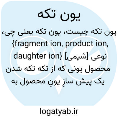 {fragment ion, product ion, daughter ion} [شیمی] نوعی محصول یونی که از تکه تکه شدن یک پیش سازِ یونِ محصول به دست می آید و ممکن است پایدار باشد یا به تکه تکه شدن ادامه دهد