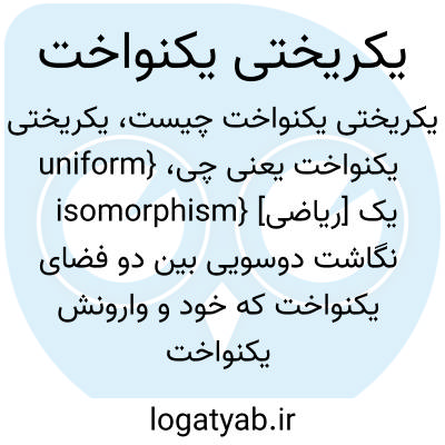 {uniform isomorphism} [ریاضی] یک نگاشت دوسویی بین دو فضای یکنواخت که خود و وارونش یکنواخت پیوسته باشند