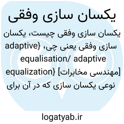 {adaptive equalisation/ adaptive equalization} [مهندسی مخابرات] نوعی یکسان سازی که در آن برای بهینه سازی ویژگی های یک نشانک/ سیگنال، پیوسته و به طور خودکار عواملی مانند اعوجاج جبران می شود