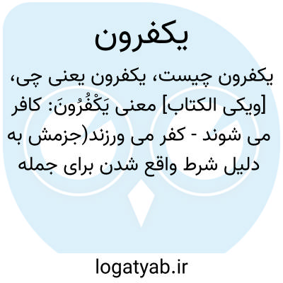 [ویکی الکتاب] معنی یَکْفُرُونَ: کافر می شوند - کفر می ورزند(جزمش به دلیل شرط واقع شدن برای جمله بعدی است.کلمه کفر در اصل به معنای پوشاندن است برای همین در عبارت " کَمَثَلِ غَیْثٍ أَعْجَبَ ﭐلْکُفَّارَ نَبَاتُهُ "به معنای کشاورزان است از این جهت که دانه را در خاک پنهان می کنند و از...