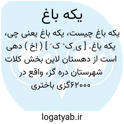 یکه باغ. [ ی ِک ْ ک َ ] ( اِخ ) دهی است از دهستان لاین بخش کلات شهرستان دره گز، واقع در 62000گزی باختری کبودگنبد، با 231 تن سکنه. آب آن از رودخانه و راه آن مالرو است. ( از فرهنگ جغرافیایی ایران ج 9 ).