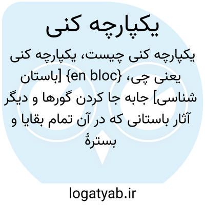 {en bloc} [باستان شناسی] جابه جا کردن گورها و دیگر آثار باستانی که در آن تمام بقایا و بسترۀ اطراف را یکپارچه برمی دارند و به آزمایشگاه یا موزه منتقل می کنند