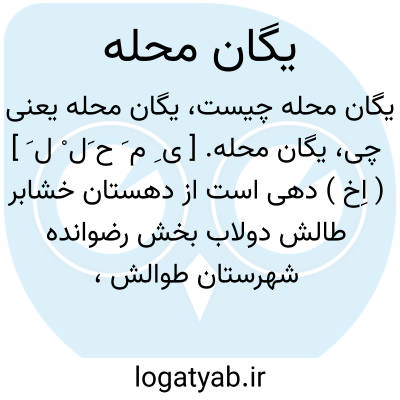 یگان محله. [ ی ِ م َ ح َل ْ ل َ ] ( اِخ ) دهی است از دهستان خشابر طالش دولاب بخش رضوانده شهرستان طوالش، واقع در 14000گزی جنوب رضوانده و 7000 گزی جنوب شوسه انزلی به آستارا، با 228 تن سکنه. آب آن از رودخانه چاف رود و راه آن مالرو است. ( از فرهنگ جغرافیایی ایران ج 2 ).