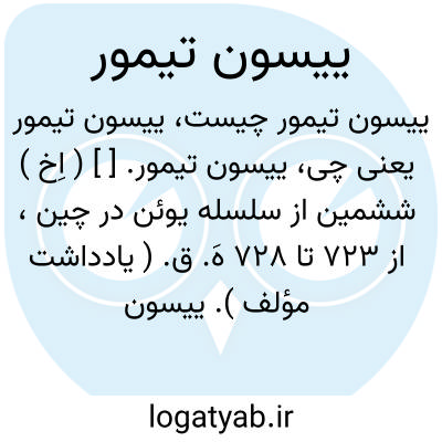 لغت نامه دهخدا ییسون تیمور. [ ] ( اِخ ) ششمین از سلسله یوئن در چین، از 723 تا 728 هَ. ق. ( یادداشت مؤلف ).ییسون تیمور. [ ] ( اِخ ) بیست وسومین از اولوس جغتای در ماوراءالنهر، ظاهراً از 739 تا 741 هَ. ق. ( یادداشت مؤلف ).