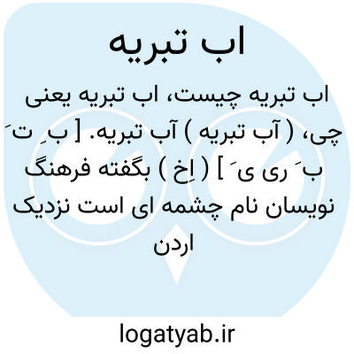 ( آب تبریه ) آب تبریه. [ ب ِ ت َ ب َ ری ی َ ] ( اِخ ) بگفته فرهنگ نویسان نام چشمه ای است نزدیک اردن که هفت سال روان و هفت سال خشک است.