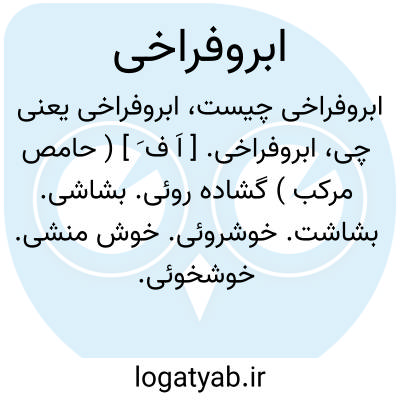 ابروفراخی. [ اَ ف َ ] ( حامص مرکب ) گشاده روئی. بشاشی. بشاشت. خوشروئی. خوش منشی. خوشخوئی. تازه روئی. خوش خلقی. شکفته روئی: