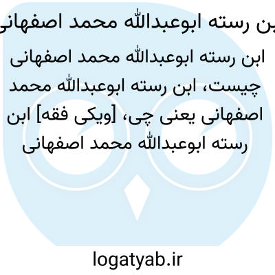 [ویکی فقه] ابن رسته ابوعبدالله محمد اصفهانی (ابهام زدایی). ابن رسته ابوعبداللّه محمد اصفهانی ممکن است اشاره به اشخاص و شخصیت های ذیل باشد: • ابن رسته ابوعبداللّه محمد بن اسحاق اصفهانی، از محدّثین اصفهان و داماد رُسته• ابن رسته ابوعبداللّه محمد بن عبداللّه مدینی اصفهانی، از محدّثان قرن سوم هجری در اصفهان• ابن رسته ابوعبداللّه محمد بن عمر زهری اصفهانی، از محدّثین اصفهان در قرن سوم هجری
