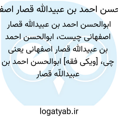 [ویکی فقه] ابوالحسن احمد بن عبیداللّه قصار اصفهانی، از محدّثین اصفهان در قرن چهارم هجری است.