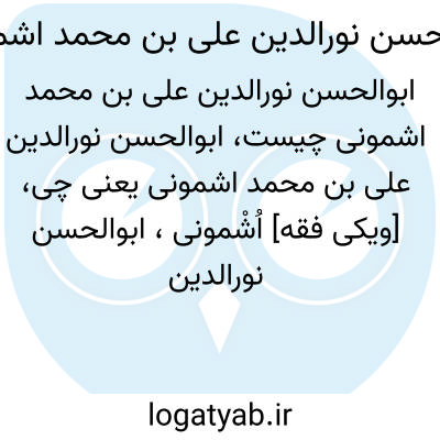 [ویکی فقه] اُشْمونی، ابوالحسن نورالدین علی بن محمد بن عیسی (۸۳۸ - ۹۱۷ یا ۹۱۸ق /۱۴۳۵-۱۵۱۱ یا ۱۵۱۲م )، فقیه، نحوی و مقری شافعی مذهب مصری است.