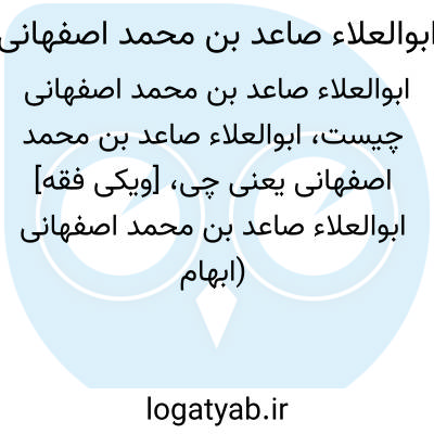 [ویکی فقه] ابوالعلاء صاعد بن محمد اصفهانی (ابهام زدایی). ابوالعلاء صاعد بن محمد اصفهانی ممکن است اشاره به اشخاص و شخصیت های ذیل باشد: • ابوالعلاء صاعد بن محمد بن عبدالرحمان صاعدی اصفهانی، ابوالعلاء صاعد بن محمد بن عبدالرحمن بخاری اصفهانی، از فقها و بزرگان آل صاعد و از قضات اصفهان در قرن پنجم هجری• ابوالعلاء صاعد بن محمد بن احمد صاعدی اصفهانی، صاعد بن محمد بن احمد بن عبیدالله ملقب به عمادالاسلام و مشهور به قاضی صاعد ...