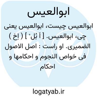 ابوالعیس. [ اَ بُل ْ ] ( اِخ ) الضمیری. او راست: اصل الاصول فی خواص النجوم و احکامها و احکام الموالید. در کشف الظنون حاجی خلیفه این نام و نسبت بصورت مزبورآمده است لکن به اغلب احتمالات نام مصحف ابوالعنبس صیمری است. رجوع به ابوالعنبس محمدبن اسحاق... شود.