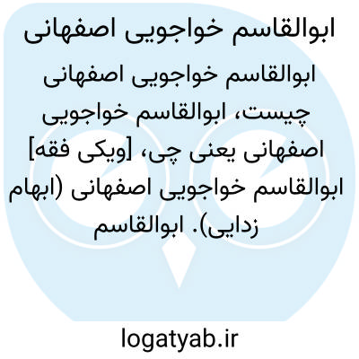 [ویکی فقه] ابوالقاسم خواجویی اصفهانی (ابهام زدایی). ابوالقاسم خواجویی اصفهانی ممکن است اشاره به اشخاص و شخصیت های ذیل باشد: • ابوالقاسم نقاش خواجویی اصفهانی، از هنرمندان نقّاش قرن سیزدهم هجری در اصفهان• ابوالقاسم ادیب خواجویی اصفهانی، از ادبا و شعرای اصفهان در اوایل قرن سیزدهم هجری• سیدابوالقاسم بن محمدباقر خواجویی موسوی اصفهانی، از علما و فضلای اصفهان در قرن دوازده هجری