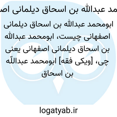 [ویکی فقه] ابومحمد عبداللّه بن اسحاق دیلمانی اصفهانی، از محدّثین عامّه اصفهان در قرن سوم هجری بوده است.