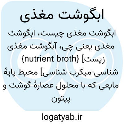 {nutrient broth} [زیست شناسی-میکرب شناسی] محیط پایۀ مایعی که با محلول عصارۀ گوشت و پپتون و سدیم کلرور تهیه می شود