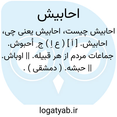 احابیش. [ اَ ] ( ع اِ ) ج ِ اُحبوش. جماعات مردم از هر قبیله. || اوباش. || حبشه. ( دمشقی ).
