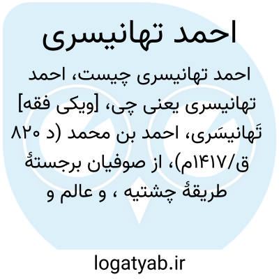 [ویکی فقه] تَهانیسَری، احمد بن محمد (د ۸۲۰ ق/۱۴۱۷م)، از صوفیان برجستۀ طریقۀ چشتیه، و عالم و شاعر سدۀ ۹ق/۱۵م در هند بود.