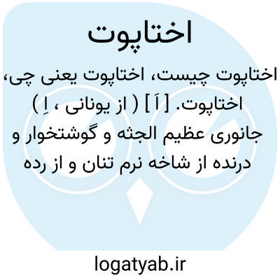 اختاپوت. [ اَ ] ( از یونانی، اِ ) جانوری عظیم الجثه و گوشتخوار و درنده از شاخه نرم تنان و از رده پابرسران که تعداد هشت بازوی گیرنده دور دهان دارد و طول بازوهایش به چند متر می رسد و برای غواصان حیوان خطرناکی بشمار می رود.
