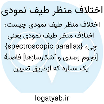 {spectroscopic parallax} [نجوم رصدی و آشکارسازها] فاصلۀ یک ستاره که ازطریق تعیین قدر مطلق (magnitude absolute ) آن به کمک ردۀ طـیـفی (spectral class ) و مقـایسـه با قدر ظاهری ستاره به دست می آید متـ. فاصلۀ طیف نمودی spectroscopic distance