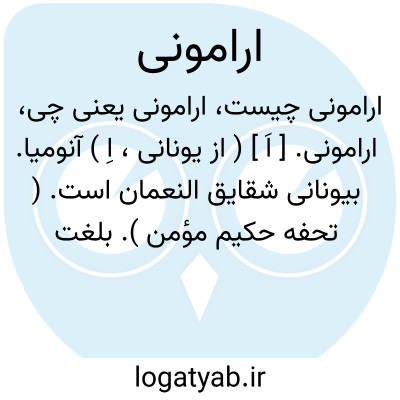 ارامونی. [ اَ ] ( از یونانی، اِ ) آنومیا. بیونانی شقایق النعمان است. ( تحفه حکیم مؤمن ). بلغت یونانی لاله را گویند و آن باغی و صحرائی هر دو باشد و بعربی شقایق النعمان خوانند و نوعی دیگر هم هست که آنرا آذریون گویند. ( برهان قاطع ). انومنا. رجوع به شقایق شود.