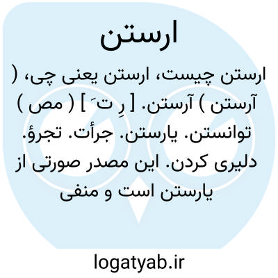 ( آرستن ) آرستن. [ رِ ت َ ] ( مص ) توانستن. یارستن. جرأت. تجرؤ. دلیری کردن. این مصدر صورتی از یارستن است و منفی یارستن را که نیارستن باشد میتوان منفی آرستن شمرد بتبدیل همزه بیاء: