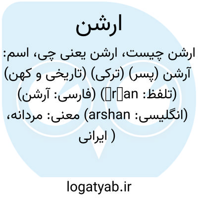 اسم: آرشن (پسر) (ترکی) (تاریخی و کهن) (تلفظ: āršan) (فارسی: آرشن) (انگلیسی: arshan)