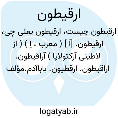 ارقیطون. [اَ ] ( معرب، اِ ) ( از لاطینی آرکتولاپا ) آراقیطون. اراقیطون. ارقطیون. باباآدم.مؤلف تحفةالمؤمنین گوید: معرّب از ارقیثون یونانی و آن نباتیست مزغّب، ساقش مربع و سست و قریب بذرعی و برگش مایل به استداره واکلیل او مایل بسرخی و تخمش بقدر زیره و از آن کوچکتر و سیاه و تندطعم و بیخش نرم و سفید و شیرین. در دوم گرم و خنک و لطیف و جالی و مجفف و در امراض دهان و دندان و درد سینه و نفث مده و تسکین درد مفاصل بی عدیل و نیم رطل از طبیخ او جهت عسرالبول و عرق النسا ( نسا ) و ضماد او جهت سوختگی آتش و مفاصل و شقاق و قرحه سرانگشتان که از برودت باشد نافع و مضر کلیه و مصلحش روغنها و قدر شربتش تا شش درهم و بدلش شیح است ومؤلف مالایسع گوید که: صنف دیگر از او میباشد برگش شبیه به برگ کدو و از آن بزرگتر و صلب و مایل بسیاهی و مزغّب و بیخش بزرگ و سفید مجفف با قبض و محلل و ذرور برگ او جهت قروح خبیثه نافع و بدستور ضماد تازه ٔاو و طلاء مدقوق او جهت درد مفاصل که باحکه ای باشد بی عدیل و چون دو درهم بیخ او را با مثل او حب صنوبر بنوشند جهت تنقیه چرک شش نافع است. و رجوع به ارقطیون و اراقطیون و تذکره ضریر انطاکی ( ارقیطون ) شود.
