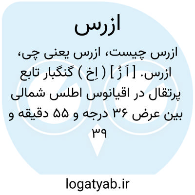 ازرس. [ اَ زُ ] ( اِخ ) گنگبار تابع پرتقال در اقیانوس اطلس شمالی بین عرض 36 درجه و 55 دقیقه و 39 درجه و 44 دقیقه شمالی و طول 25 درجه و 10 دقیقه و 31 درجه و 16 دقیقه غربی، به مسافت 800 میلی شطوط پرتقال. مساحت سطح آن بیش از 1100 میل مربع. در این جزائر زلزله ها و آتشفشانیها روی داده و ضررهای بسیار وارد آورده بخصوص زلزله ٔسال 1000 هَ. و آتشفشانی که ناگهان به سال 1223 هَ. ق. در سن ژرژ پدید آمد و ارتفاع آن به 3500 قدم می رسید و مدت شش روز دوام یافت و جزیره مزبور را خراب کرد. و نیز آتشفشانی که هنگامی از دریا، قرب سان میگل پدیدار شد و پس از بارانیدن خاکستر و سنگ ناپدید شد. و همه این جزایر دارای مناظر زیبا و هوای لطیف و نباتات خرم و میوه های فراوان است و اکثر صادرات آن شیر و تنباکو و پرتقال و لیمو و گوشت گاو است. ( از ضمیمه معجم البلدان ).