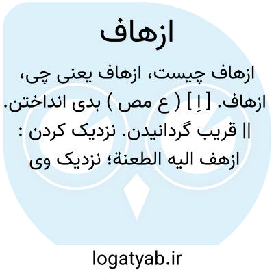 ازهاف. [ اِ ] ( ع مص ) بدی انداختن. || قریب گردانیدن. نزدیک کردن: ازهف الیه الطعنة؛ نزدیک وی گردانید نیزه را. || دروغ آوردن: ازهف له حدیثاً؛ دروغ آورد برای او. || زیاده کردن خبر. سخن چینی کردن: ازهف الخبر؛زیاده کرد در آن و دروغ گفت و سخن چینی کرد. || خوار داشتن. || خیانت کردن. || افکندن ستور کسی را. || شگفت داشتن بچیزی: ازهفت فلانة الیه؛ اِذا اَعْجبته؛ بشگفت آمد فلان زن، او را. || بشگفت آوردن کسی را. || زود کشتن. هلاک گردانیدن: ازهفت علیه. || خسته را کشتن. اِزْآف. اِزْعاف. || برآغالیدن: ازهف بالشّر. || بردن چیزی را. ببردن. || نسبت کردن سخن هیچکاره را بکسی. || بسوی بدی شتافتن. ( منتهی الارب ).