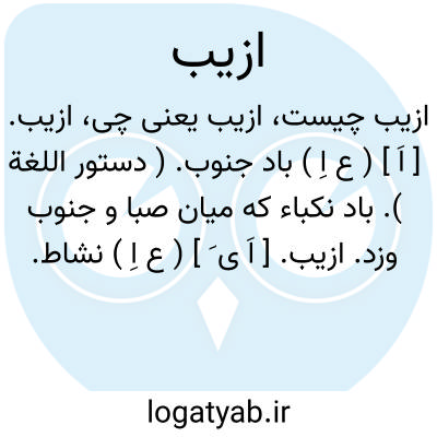 ازیب. [ اَ ] ( ع اِ ) باد جنوب. ( دستور اللغة ). باد نکباء که میان صبا و جنوب وزد.