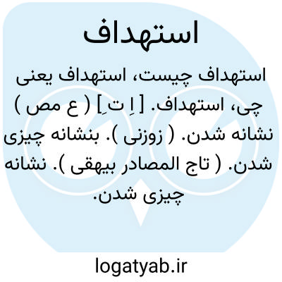 استهداف. [ اِ ت ِ] ( ع مص ) نشانه شدن. ( زوزنی ). بنشانه چیزی شدن. ( تاج المصادر بیهقی ). نشانه چیزی شدن. خود را نشانه ساختن. نشانه کردن خود را: من صنف فقد استهدف. || بلند برآمدن. اهداف. بلند گردیدن. || پائیدن. || کوتاهی کردن دوشنده در دوشیدن. ( منتهی الارب ). || انتصاب. راست شدن.
