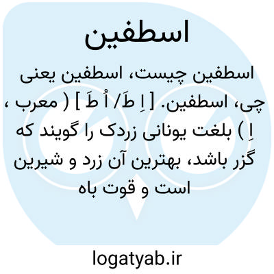 اسطفین. [ اِ طَ/ اُ طَ ] ( معرب، اِ ) بلغت یونانی زردک را گویند که گزر باشد، بهترین آن زرد و شیرین است و قوت باه دهد و پشت و کمر را قایم کند. ( برهان ). بلغت یونانی زردک را گویند که گزر باشد. ( الفاظ الادویة ) ( مؤید الفضلاء ). اسطفین، اصطفین است، اسطون نیز گویند و آن جزر است. ( اختیارات بدیعی ). رجوع به اسطفلین و اسطافالس و اسطون شود.