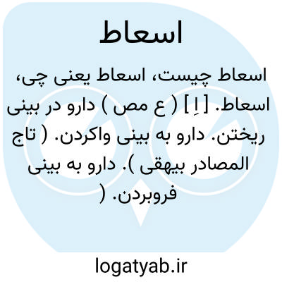 اسعاط. [ اِ ] ( ع مص ) دارو در بینی ریختن. دارو به بینی واکردن. ( تاج المصادر بیهقی ). دارو به بینی فروبردن. ( زوزنی ). سَعوط در بینی کردن. دارو ریختن در بینی. ( منتهی الارب ): اسعطه الدواء. || مبالغه کردن در تفهیم علمی. || نیزه بر بینی زدن و بعضی گفته اند نیزه زدن مطلقا. ( از منتهی الارب ). نیزه بر سینه زدن. ( تاج المصادر بیهقی ).