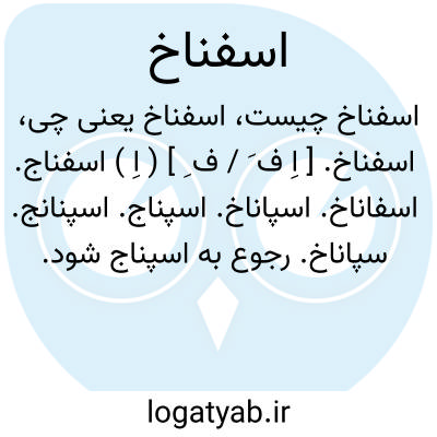 اسفناخ. [ اِ ف َ / ف ِ ] ( اِ ) اسفناج. اسفاناخ. اسپاناخ. اسپناج. اسپنانج. سپاناخ. رجوع به اسپناج شود.