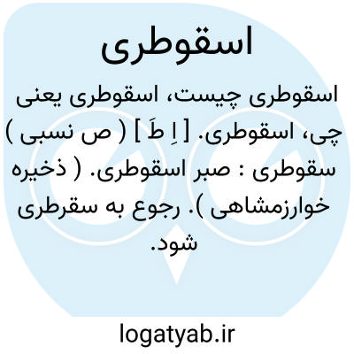 لغت نامه دهخدا اسقوطری. [ اِ طَ ] ( ص نسبی ) سقوطری: صبر اسقوطری. ( ذخیره خوارزمشاهی ). رجوع به سقرطری شود.