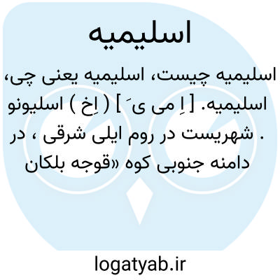 اسلیمیه. [ اِ می ی َ ] ( اِخ ) اسلیونو. شهریست در روم ایلی شرقی، در دامنه جنوبی کوه «قوجه بلکان » بر نهری از توابع شط دانوب در 132هزارگزی شمال ادرنه. کارخانه های مشهور عبابافی دارد و گلاب گیری در این محل بسیار رایج است. زمانی اسلحه خوب در اینجا میساختند. در زمان اداره عثمانی سمت مرکز لوایی داشت و هر سال یک بار در این شهر بازار مکاره ترتیب میدادند. ( از قاموس الاعلام ترکی ). و رجوع به اسلیون شود.