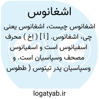 اشغانوس. [ اَ ] ( اِخ ) محرف اسفیانوس است و اسفیانوس مصحف وسپاسیان است. و وسپاسیان پدر تیتوس ( ططوس ) پادشاه روم بود. رجوع به اسفاسیانوس و تاریخ ایران باستان ج 3 ص 2547 و 2551 شود.