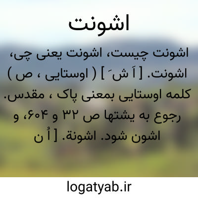 اشونت. [ اَ ش َ ] ( اوستایی، ص ) کلمه اوستایی بمعنی پاک، مقدس. رجوع به یشتها ص 32 و 604، و اشون شود.