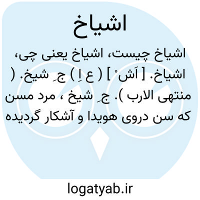 اشیاخ. [ اَش ْ ] ( ع اِ ) ج ِ شیخ. ( منتهی الارب ). ج ِ شیخ، مرد مسن که سن دروی هویدا و آشکار گردیده باشد یا از پنجاه یا از پنجاه ویک تا آخر عمر یا تا هشتادسالگی. ( آنندراج ). و رجوع به شیخ شود. مردمان مسن و معمر. ( فرهنگ نظام ).