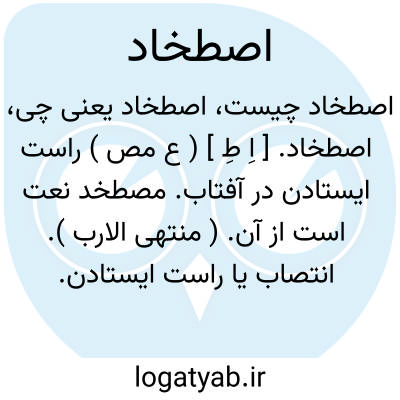 اصطخاد. [ اِ طِ ] ( ع مص ) راست ایستادن در آفتاب. مصطخد نعت است از آن. ( منتهی الارب ). انتصاب یا راست ایستادن. مصطخد نعت آنست. ( از اقرب الموارد ) ( از المنجد ).
