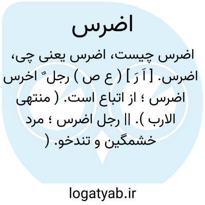اضرس. [ اَ رَ ] ( ع ص ) رجل ٌ اخرس اضرس؛ از اتباع است. ( منتهی الارب ). || رجل اضرس؛ مرد خشمگین و تندخو. ( ناظم الاطباء ). || غلام اضرس؛ کودک کلان دندان. ( منتهی الارب ) ( ناظم الاطباء ).