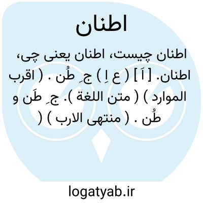 اطنان. [ اِ ] ( ع مص ) اطنان ساق و ذراع به شمشیر؛ بریدن آنها بسرعت. ( از متن اللغة ). اطنان ساق؛ بریدن آن و مقصود آوای بریدن است. و گویند:ضربه فاطن ذراعه و اطنت ذراعه اذا ندرت لانها تطن عن ذلک. ( از اقرب الموارد ). بریدن. گویند: ضربه بالسیف فاطن ساقه؛ ای قطعها. قال بعضهم یراد بذلک صوت القطع. ( منتهی الارب ) ( ناظم الاطباء ). بریدن. ( آنندراج ) ( تاج المصادر بیهقی ). || اطنان تشت و جز آن؛به آوا آوردن. ( از اقرب الموارد ) ( از متن اللغة ). به بانگ آوردن تشت و جز آن. ( ناظم الاطباء ) ( از منتهی الارب ) ( آنندراج ). به بانگ آوردن مس و روی و آنچه بدان ماند. ( تاج المصادر بیهقی ). به بانگ آوردن رویینه وغیر آن. ( مؤید الفضلاء ). به آواز آوردن. ( زوزنی ).