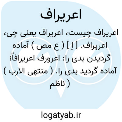اعریراف. [ اِ ] ( ع مص ) آماده گردیدن بدی را: اعرورف اعریرافاً؛ آماده گردید بدی را. ( منتهی الارب ) ( ناظم الاطباء ). مهیای بدی شدن. ( از اقرب الموارد ). || موج برآوردن دریا: اعرورف البحر؛ موج برآورددریا. ( منتهی الارب ) ( از ناظم الاطباء ). متراکم شدن وبرآمدن امواج دریا و بمانند عرف شدن. ( از اقرب الموارد ). || سطبر و درهم گردیدن نخل مانند فش کفتار. ( از منتهی الارب ) ( از ناظم الاطباء ). تنومند وبهم پیچیده شدن خرمابن مانند فش کفتار. ( از اقرب الموارد ): اعرورف النّخل؛ سطبر و درهم گردید مانند فش کفتار. ( منتهی الارب ) ( از ناظم الاطباء ). || کف برآوردن خون: اعرورف الدم؛ کف برآورد خون. ( منتهی الارب ) ( ناظم الاطباء ). کف دار شدن چنانکه مانند عرف گردد: اعرورف الدم؛ صار له من الزبد شبه العرف. ( از اقرب الموارد ). || بالیدن و بلند گردیدن یال اسب: اعرورف الفرس؛ بالید و بلند گردید یال آن. ( منتهی الارب ) ( ناظم الاطباء ). یال دار شدن اسب: اعرورف الفرس؛ صار ذاعرف. ( از اقرب الموارد ). بالیدن و بلند گردیدن یال اسب. ( آنندراج ). || برآمدن بر خرمابن. ( منتهی الارب ) ( از ناظم الاطباء ). || بر یال اسب بالا رفتن سوار: اعرورف الراکب الفرس؛ علا علی عرفه. || بالا رفتن مرد بر اعراف: اعرورف الرجل؛ ارتفع علی الاعراف. ( از اقرب الموارد ).