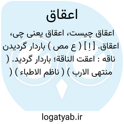 اعقاق. [ اِ ] ( ع مص ) باردار گردیدن ناقه: اعقت الناقة؛ باردار گردید. ( منتهی الارب ) ( ناظم الاطباء ) ( آنندراج ). || عقان ( آنچه از بن خرمابن برزند و برآید ) برآوردن نخیل: اعقت النخیل؛ عقان برآورد. ( منتهی الارب ). عقان برآوردن نخیل. ( آنندراج ) ( ناظم الاطباء ). عقان برآوردن خرمابن و تاک. ( از اقرب الموارد ). || عقوق آوردن کسی. ( ناظم الاطباء ). نافرمانی کردن و آزردن پدر و مادر: اعق فلان؛ جاء بالعقوق و العصیان. ( از اقرب الموارد ). || تلخ گردانیدن. ( منتهی الارب ) ( آنندراج ) ( ناظم الاطباء ). تلخ گردانیدن خداوند آبرا: اعق اﷲ الماء؛ امرّه؛ ای جعله مراً مثل افعّه. ( از اقرب الموارد ). || باردار شدن اسب ماده. ( منتهی الارب ) ( آنندراج ) ( ناظم الاطباء ). آبستن شدن ستور. ( تاج المصادر بیهقی ). باردار شدن اسب. ( از اقرب الموارد ). || موی برآوردن حمل در شکم مادرش: اعقت الحامل؛ نبتت عقیقة ولدها فی بطنها. ( از اقرب الموارد ).