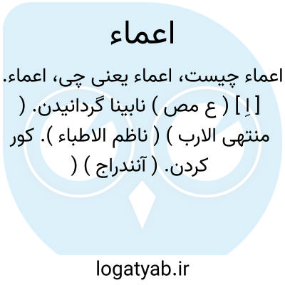 اعماء. [ اَ ] ( ع ص، اِ ) ج ِ اَعمی ̍، بمعنی نابینا. ( ناظم الاطباء ) ( منتهی الارب ). ج ِ اعمی ̍، بمعنی نابینا. عُمی. عُمیان. عُماة. ( از اقرب الموارد ). و رجوع به کلمه های مذکور شود. || زمینهای ویران بی عمارت و بی مردم. ( ناظم الاطباء ) ( منتهی الارب ). زمینهای مانده بی نشان که اثری از عمارت در آنها نیست. ( اقرب الموارد ). || مردم درازبالا. ( ناظم الاطباء ) ( منتهی الارب ). مردم بلندبالا. ( از اقرب الموارد ). مردم مجهول و درازبالا. ( ناظم الاطباء ). || اعماء عامیة؛ مبالغه است. ( منتهی الارب ) ( ناظم الاطباء ). || جهال. ( ناظم الاطباء ) ( اقرب الموارد ).