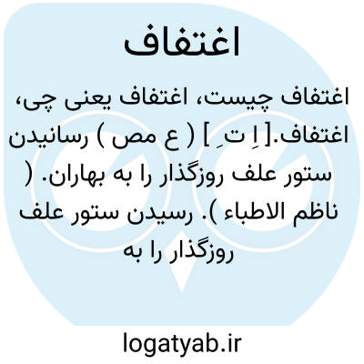 اغتفاف.[ اِ ت ِ ] ( ع مص ) رسانیدن ستور علف روزگذار را به بهاران. ( ناظم الاطباء ). رسیدن ستور علف روزگذار را به بهاران. ( منتهی الارب ) ( آنندراج ). رسیدن ستور بعلف بهار به اندازه گذران روز یا کمی فربه شدن. کقوله: «و کنا اذا ما اغتفت الخیل غفة». ( از اقرب الموارد ). || چیز اندک دادن کسی را. ( منتهی الارب ) ( آنندراج ) ( ناظم الاطباء ). چیز کمی کسی را دادن: اغتفه؛اعطاه شیئاً یسیرا. ( از اقرب الموارد ). || اندک فربه گردیدن ستور. || اندک فربه گردیدن ستور. ( منتهی الارب ) ( آنندراج ) ( ناظم الاطباء ).