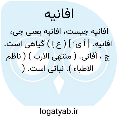افانیه. [ اَ ی َ ] ( ع اِ ) گیاهی است. ج، اَفانی. ( منتهی الارب ) ( ناظم الاطباء ). نباتی است. ( مهذب الاسماء ). رجوع به افانی شود. || سگ انگور. ( منتهی الارب ) ( ناظم الاطباء ).