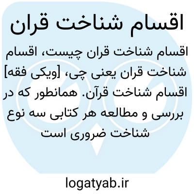 [ویکی فقه] اقسام شناخت قرآن. همانطور که در بررسی و مطالعه هر کتابی سه نوع شناخت ضروری است لذا شناخت قرآن هم اقسامی دارد.