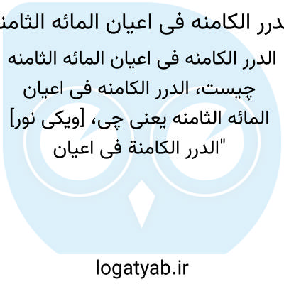 [ویکی نور] "الدرر الکامنة فی اعیان المائة الثامنة" تألیف شیخ الاسلام شهاب الدین احمد بن حجر العسقلانی (متوفای سال 852) است که به زبان عربی در شرح حال علماء قرن هشتم هجری نوشته است، دار الکتب الحدیثه آن را با تحقیق و مقدمه محمد سید جاء الحق (از علمای الازهر) به چاپ رسانده و زندگی نامه 5204 تن از بزرگان در آن آمده است.